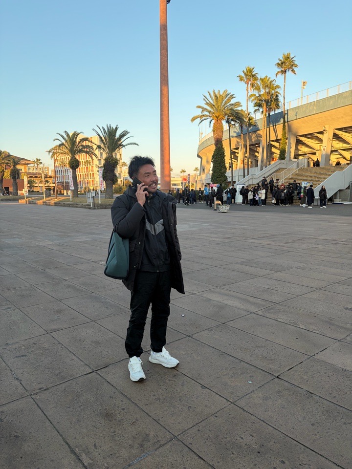 しっかりスタジアム外で出待ちして