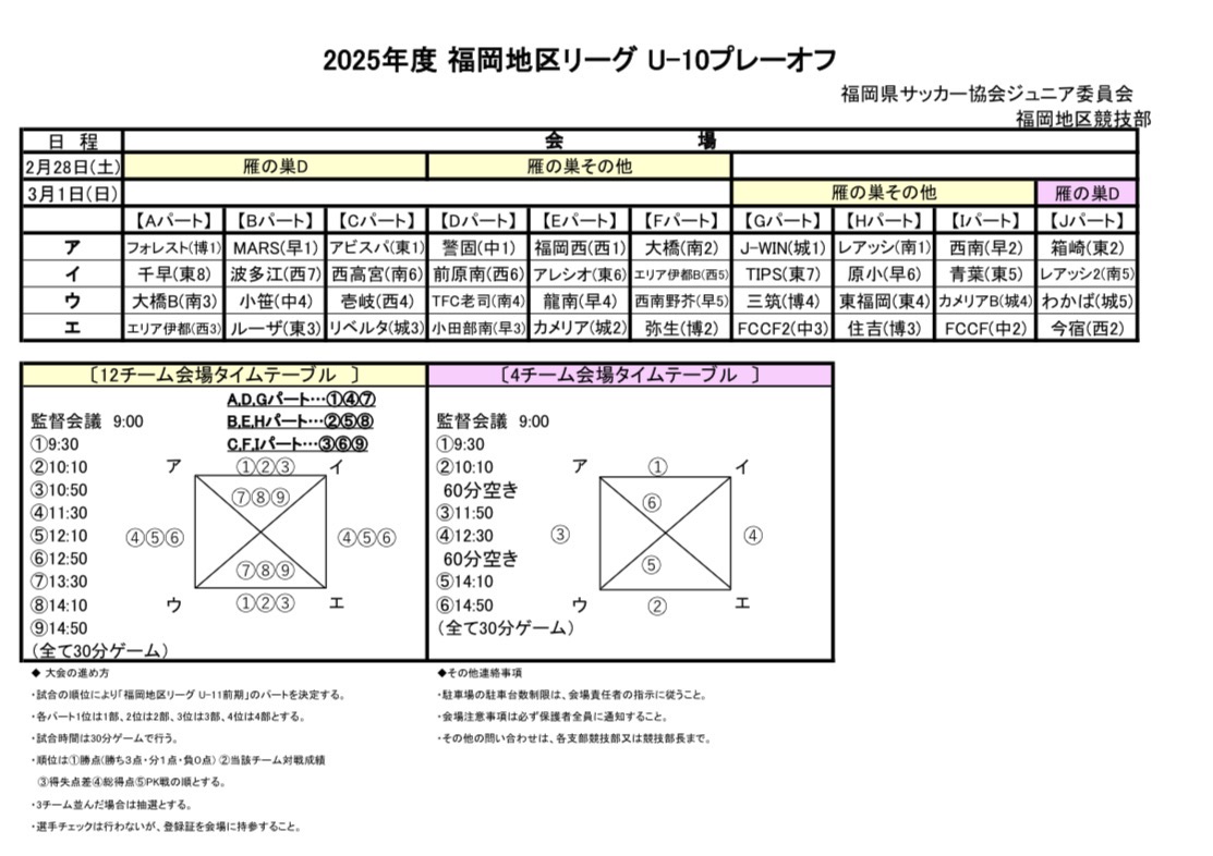 U11前期リーグのリーグが決まる